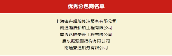 南通豪通船務(wù)有限公司榮獲2023年度“優(yōu)秀分包商”稱號(hào)。